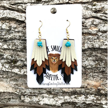 3 layers of black, brown and cream fringe finished off with a colored stone completes this pair! Casual class for anybody wanting a little country in their life. Hypoallergenic fish hooks.