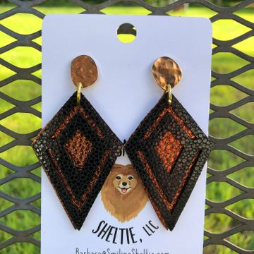 Metallic copper and black leather give a new take on a shape that gives a modern take to this pair. Hypoallergenic gold tone studs completes the look.