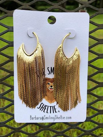 Gold fringe never looked so good! Each strand is made with a delicate chain so you can have a dressy appearance without a lot of weight to your ears. A fun look for jeans or an upscale look for your little black dress.