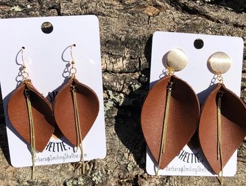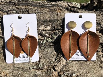 Celebrate Nature with our leather leaves that can bring a casual look to any outfit you have. Gold tone chain adds some fun bling to your day! Hypoallergenic fish hooks on small & posts on large.