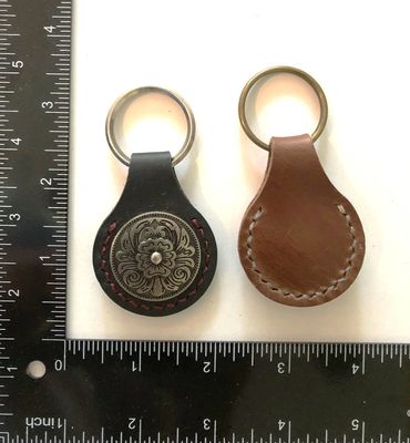 A great unisex design for a classy looking key fob. Choose between medium brown leather with antique brass floral design or black leather with antique silver floral design. Want a different color? No problem! Contact my office to discuss so I can make you a truly unique gift. Additional views shown in Gallery below.