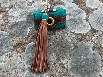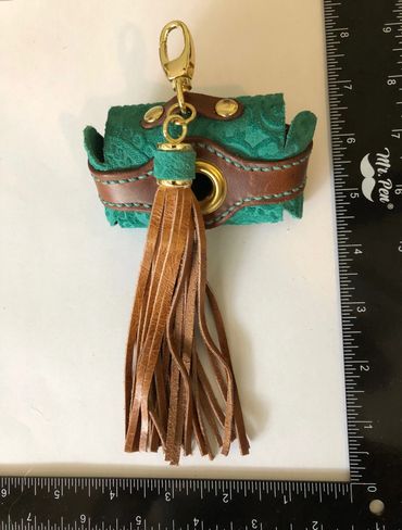 Nothing says you can't look good when walking your favorite 4 footed fur baby. This poop bag holder has a Western feel to it wit embossed leather and attached fringed tassel. Opens on both sides with snaps for easy access and holds average sized poop bags. Additional views shown in Gallery below.